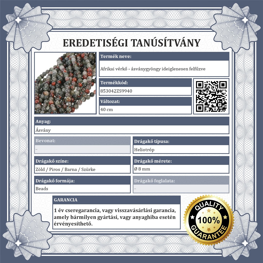 A drágakövek eredetiségét a hivatalos minőségi tanúsítvány bizonyítja.