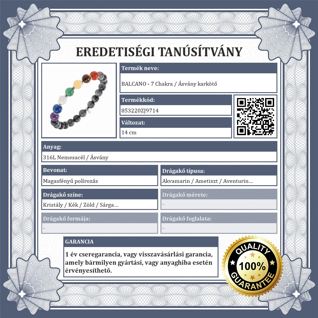 | Drágakő típusa: | Ametiszt / Aventurin / Korall / Lápisz lazuli (lazurit, lazurkő) / Tigrisszem / Jáde / Sólyomszem / Akvamarin |