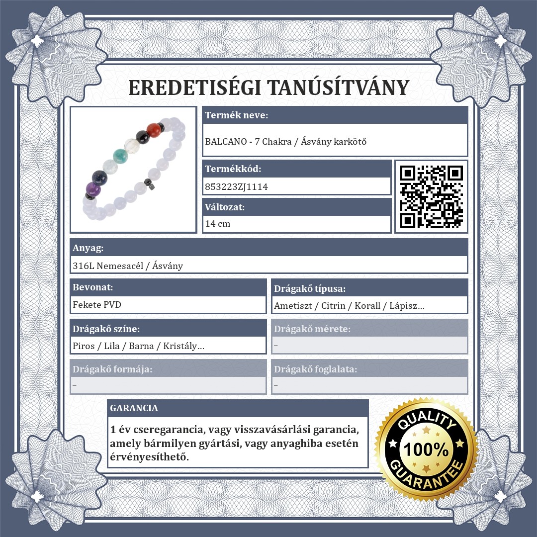 Mivel a karkötő gyöngyei eredeti ásványból vannak csiszolva, soha nem lesz teljesen egyforma két gyöngy, illetve két karkötő.