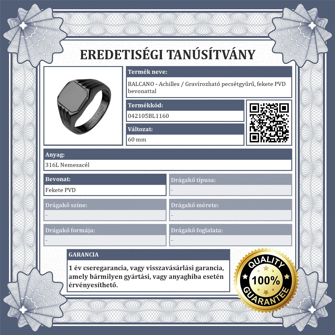 BALCANO - Achilles / Gravírozható pecsétgyűrű, fekete PVD bevonattal