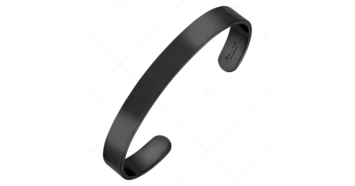 Klasszikus karperec, 316L orvosi rozsdamentes nemesacélból, fekete PVD bevonattal. Hátul nyitott így könnyű a le- és a felvétele. Anyaga kiváló minőségű, mindennapi használatra tervezve. Felülete sima, így egyedi ékszer készíthető belőle gravírozással.