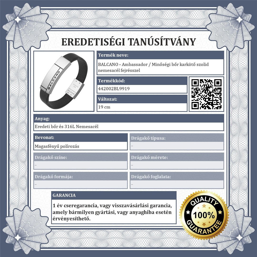 Divatos bőr karkötő, antiallergén, 316L nemesacél fejrésszel, amelyet a BALCANO márka felirat díszít. Biztonságos mágneses kapoccsal van ellátva. Stílusos és letisztult kiegészítő a mindennapokra.