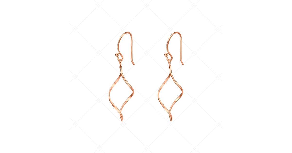 Kis méretű csavart, íves alakú 316L nemesacél csüngő fülbevaló 18K rozé arany bevonattal. Allergiamentes ékszer így bárki nyugodtan viselheti. Anyagának köszönhetően nem színeződik, nem kopik el és a gyógyvízre vagy tisztítószerekre sem érzékeny. Egyedi és elegáns bármilyen alkalomra.
