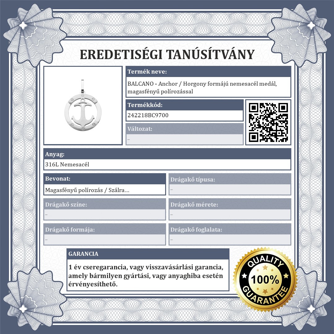BALCANO - Anchor / Horgony formájú nemesacél medál, magasfényű polírozással