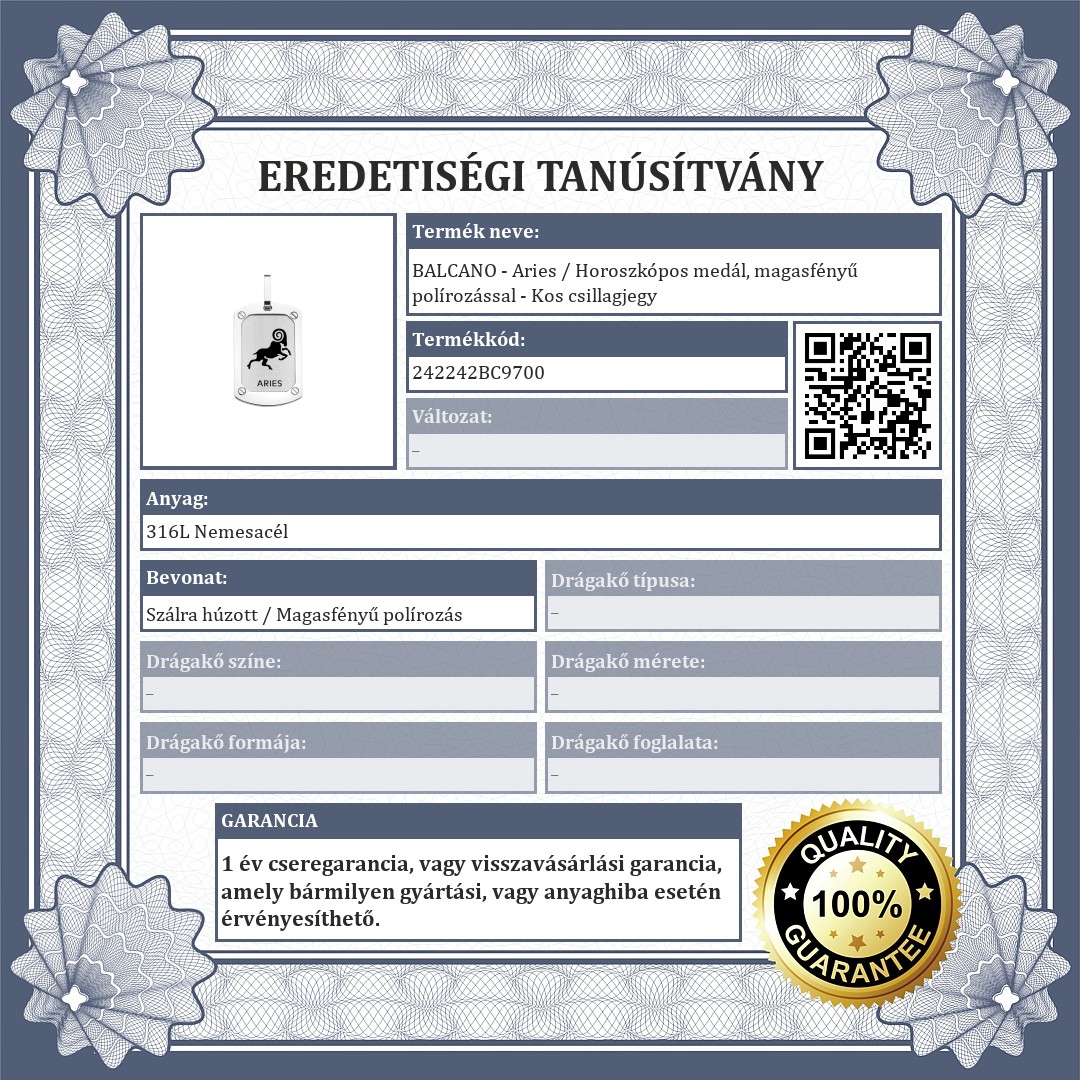 Antiallergén, nemesacél, téglalap alakú horoszkópos medál a Kos csillagjegy képével díszítve. 316L orvosi, rozsdamentes acél ékszer, amely anyagának köszönhetően rendkívül tartós. Magasfényű polírozással, középen, a matt,szálra húzott felületen található a bemaratással és festéssel készült állatövi jegyek szimbóluma.