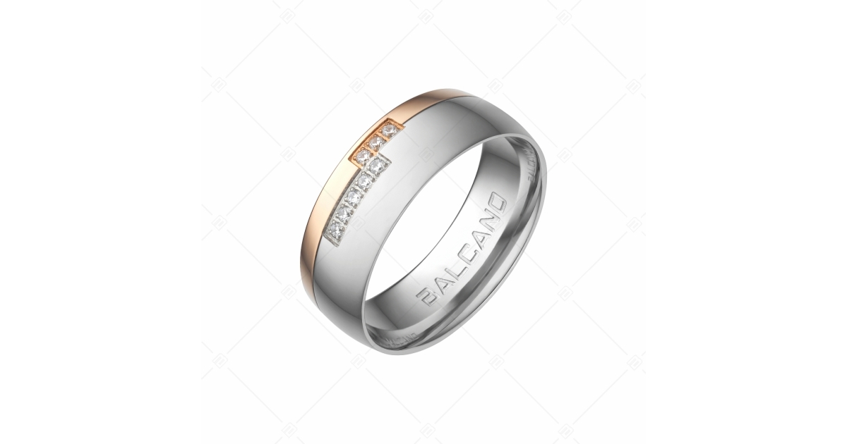 BALCANO - Aurora / Nemesacél karikagyűrű 18K rozé arany bevonattal, cirkónia drágakövekkel