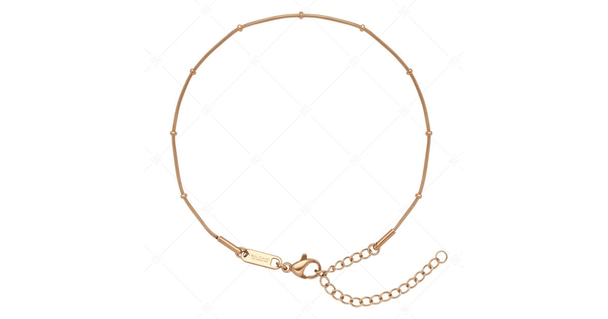 BALCANO - Beaded Snake / Nemesacél bogyós kígyólánc típusú bokalánc 18K rozé arany bevonattal - 1 mm