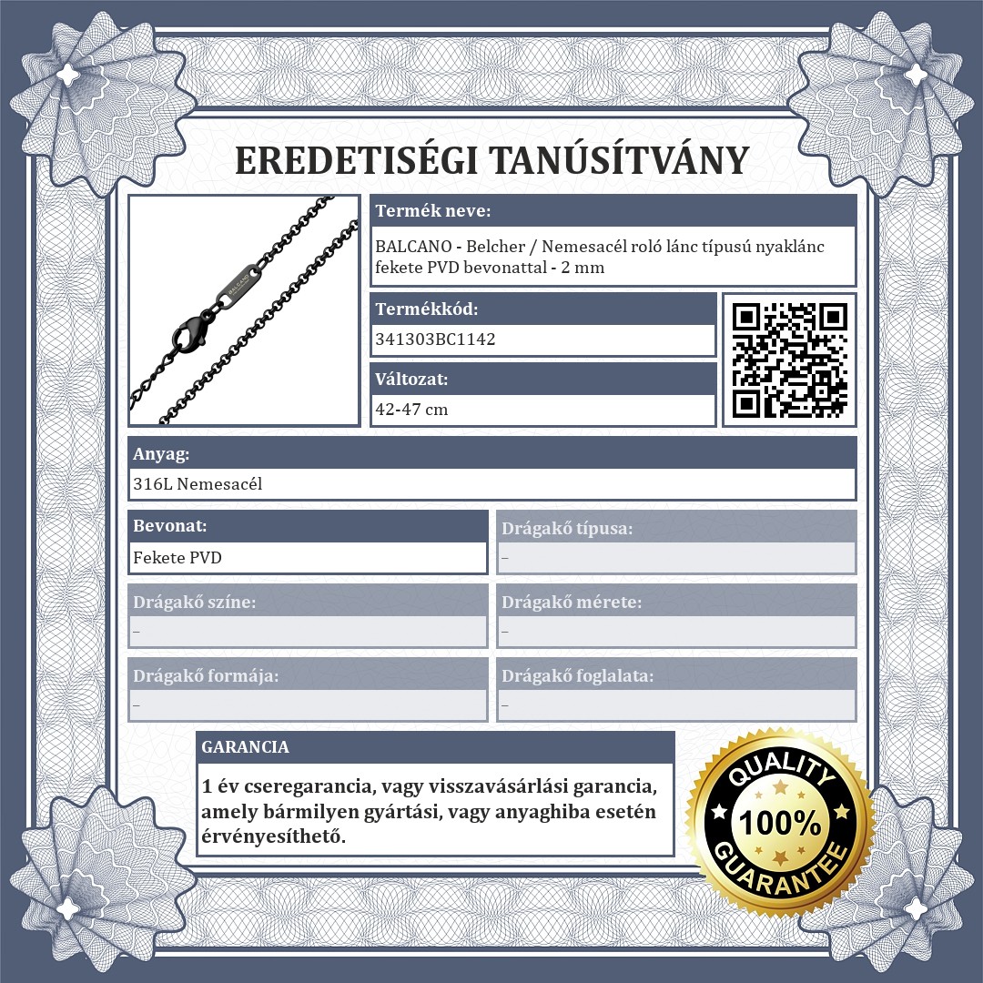 BALCANO - Belcher / Nemesacél roló lánc típusú nyaklánc fekete PVD bevonattal - 2 mm