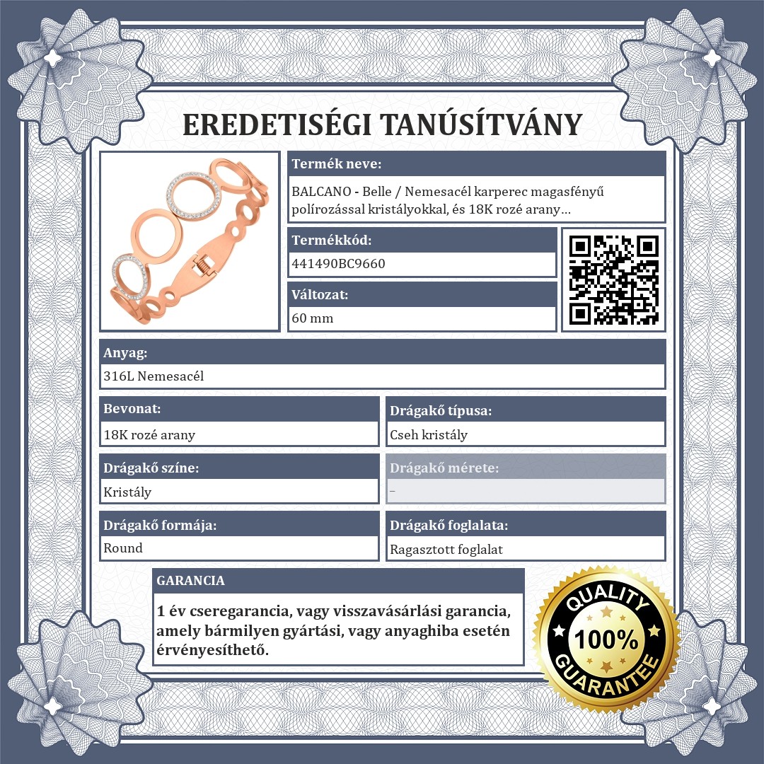 BALCANO - Belle / Nemesacél karperec magasfényű polírozással kristályokkal, és 18K rozé arany bevonattal
