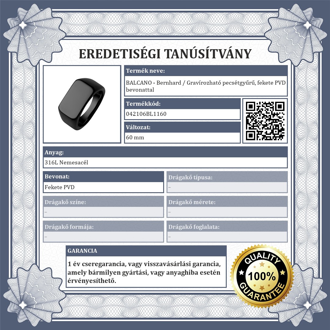 Antiallergén, nemesacél pecsétgyűrű. 316L orvosi, rozsdamentes acél anyagának köszönhetően nem kopik, nem mattul el a mindennapi rendeltetésszerű használat során. Csillogó, fekete, PVD bevonattal.