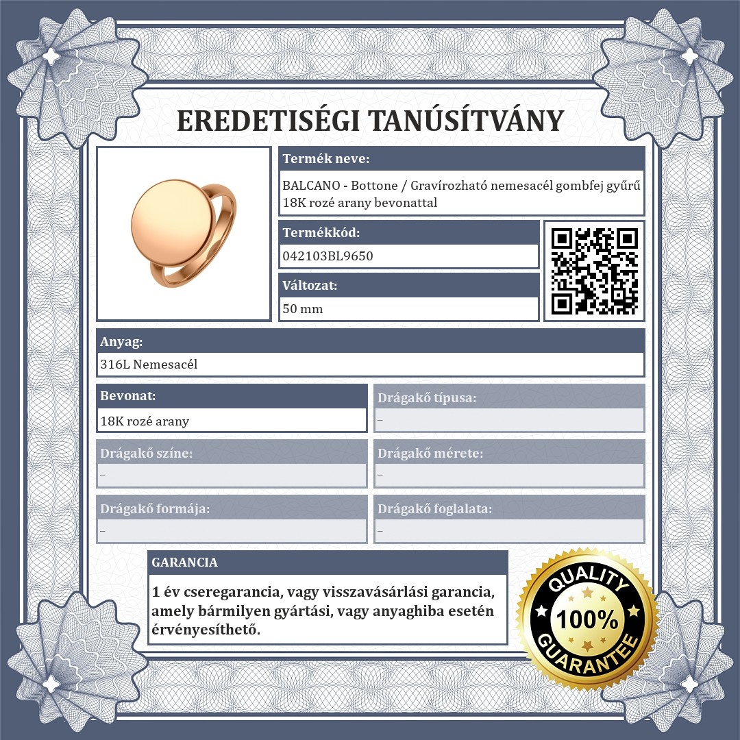 BALCANO - Bottone / Gravírozható nemesacél gombfej gyűrű 18K rozé arany bevonattal