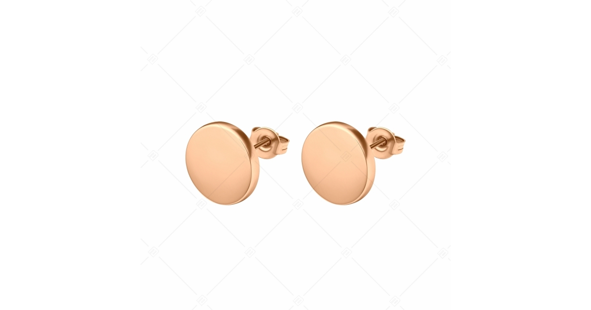 Gravírozható felületű, 316L orvosi rozsdamentes acélból készült, lapított fejű, bedugós fülbevaló, 18K rozé arany bevonattal. Több méretben elérhető.