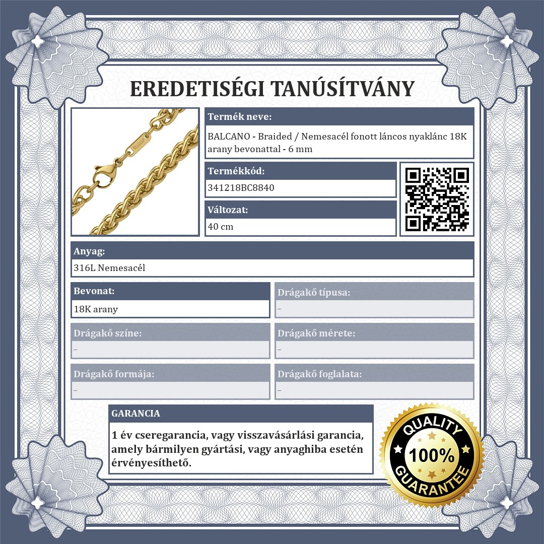 | Lánc típusa: | Fonott lánc |
