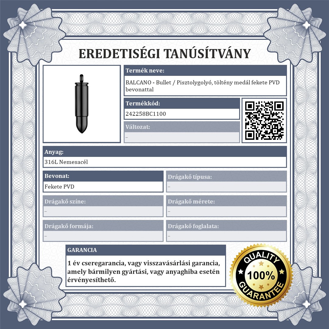 BALCANO - Bullet / Pisztolygolyó, töltény medál fekete PVD bevonattal