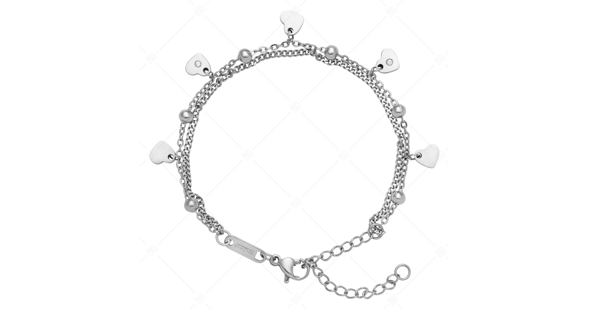 BALCANO - Calon / Nemesacél karkötő szívekkel, gömbökkel, cirkónia kristályokkal