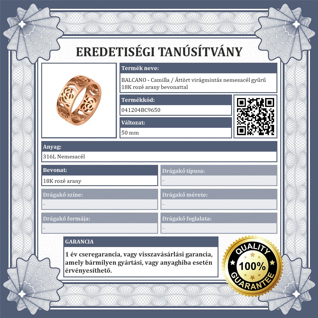 BALCANO - Camilla / Áttört virágmintás nemesacél gyűrű 18K rozé arany bevonattal