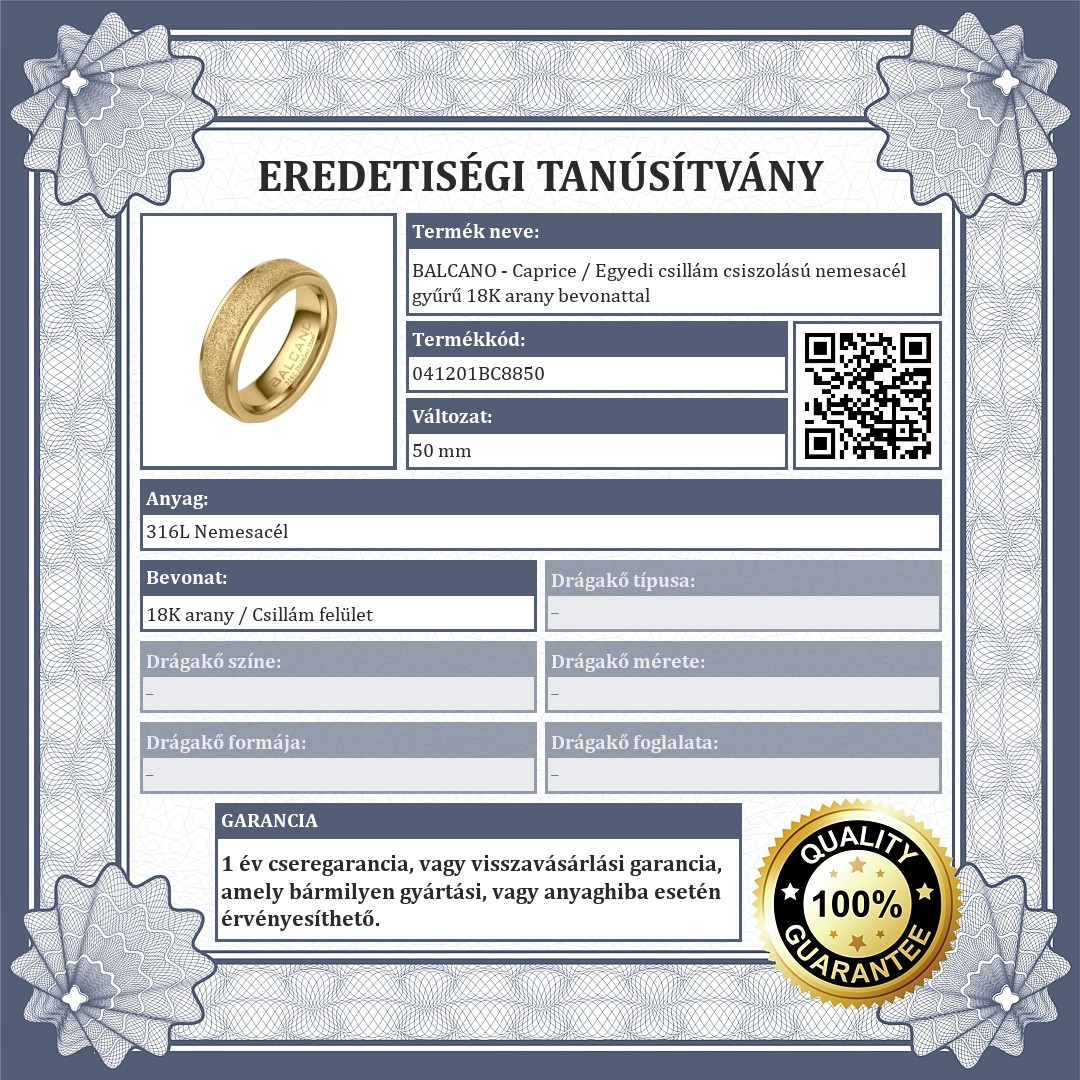BALCANO - Caprice / Egyedi csillám csiszolású nemesacél gyűrű 18K arany bevonattal