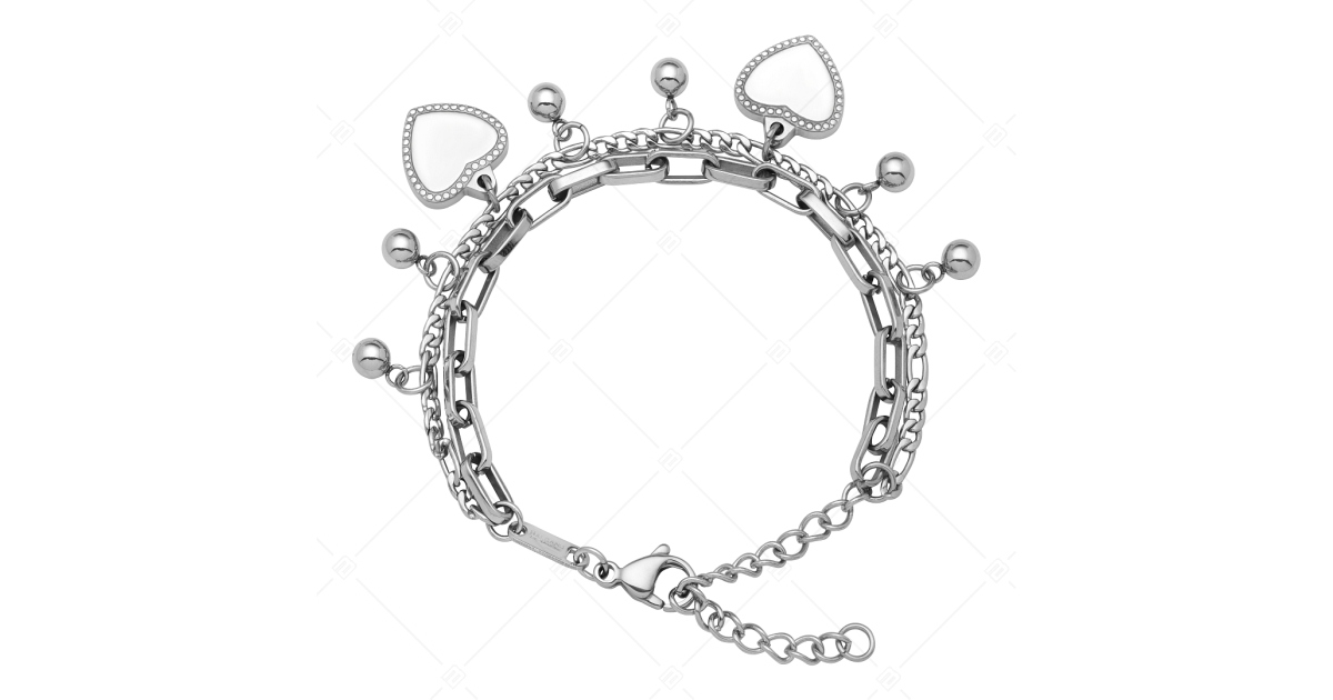 BALCANO - Carmen / Nemesacél karkötő bogyós és szív charmmal, magasfényű polírozással