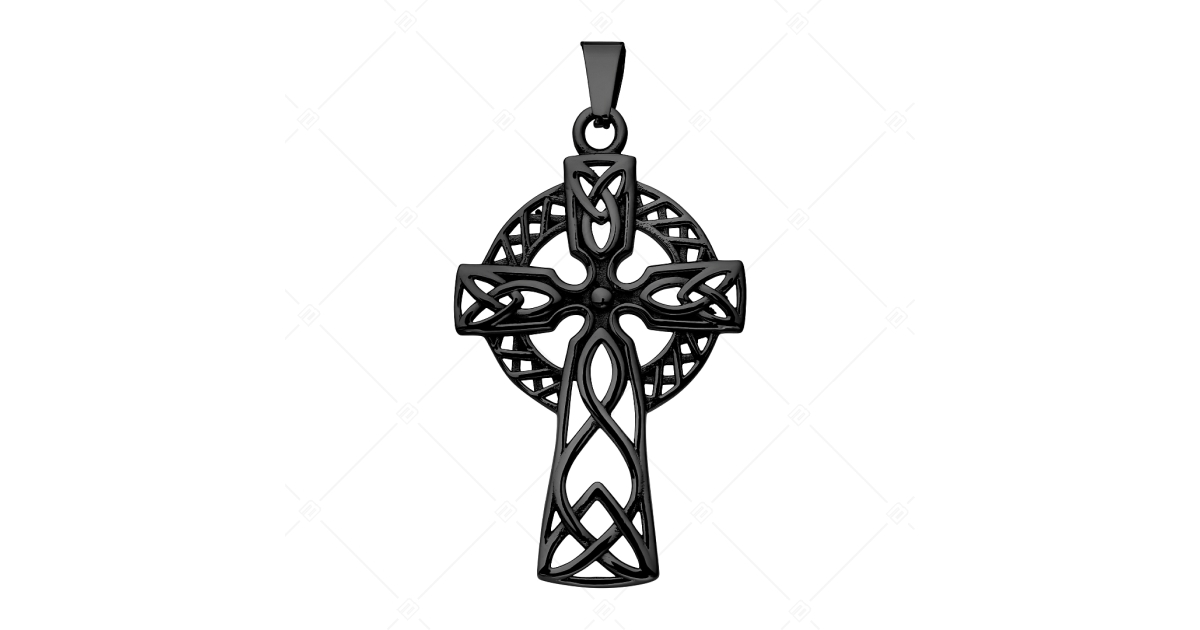 Kelta kereszt medál 316L orvosi rozsdamenetes nemesacélból fekete PVD bevonattal. Egyedi áttört mintás ékszer. Anyagának köszönhetően allergiamentes, nem kopik és nem szineződik el.