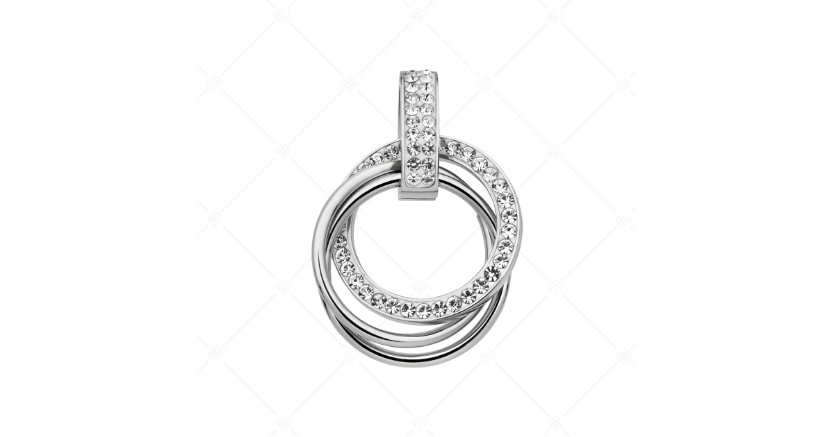 Több karikábó álló gyönyörű medál cseh kristályokkal díszítve. Anyaga 316L orvosi rozsdamenetes nemesacél magasfényű polírozással. Kubik cirkónia drágakövekkel díszítve. Anyagának köszönhetően allergiamentes, nem kopik és nem szineződik el.