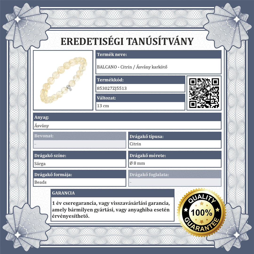 A drágakövek eredetiségét a hivatalos minőségi tanúsítvány bizonyítja.