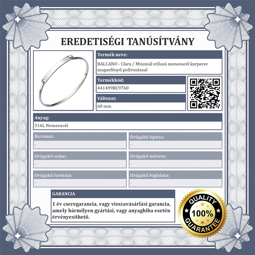 BALCANO - Clara / Minimál stílusú nemesacél karperec magasfényű polírozással