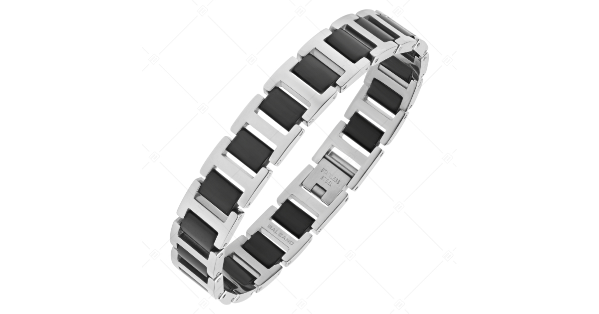 Modern karkötő, antiallergén orvosi 316L nemesacél anyagból. Ezüst színű, magasfényű polírozással és fekete PVD bevonattal. A karkötő kialakításának köszönhetően kényelmes viselet, amelyet a hétköznapi vagy az alkalmi megjelenésed dísze lehet. Biztonságos áthajtós kapoccsal záródik.
