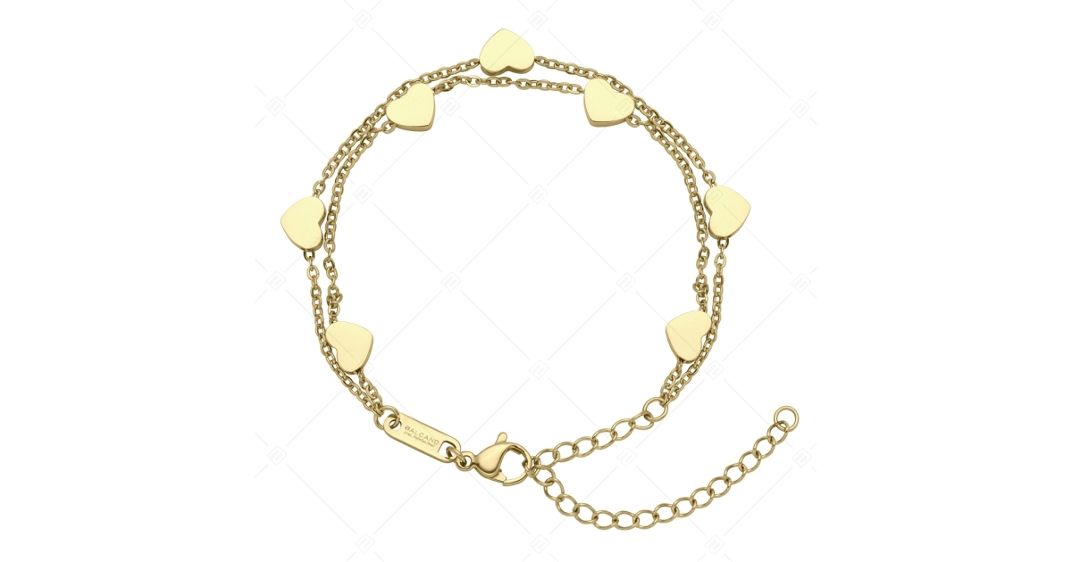 BALCANO - Coeur / Nemesacél kétsoros karkötő szívecskékkel, 18K arany bevonattal