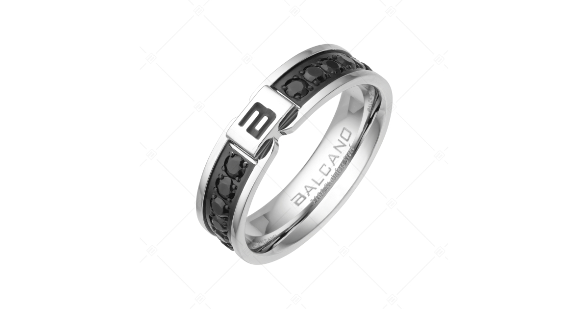BALCANO - Constantin / Nemesacél gyűrű fekete cirkónia drágakővekkel, magasfényű polírozással
