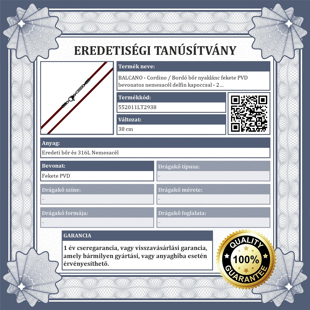BALCANO - Cordino / Bordó bőr nyaklánc fekete PVD bevonatos nemesacél delfin kapoccsal - 2 mm