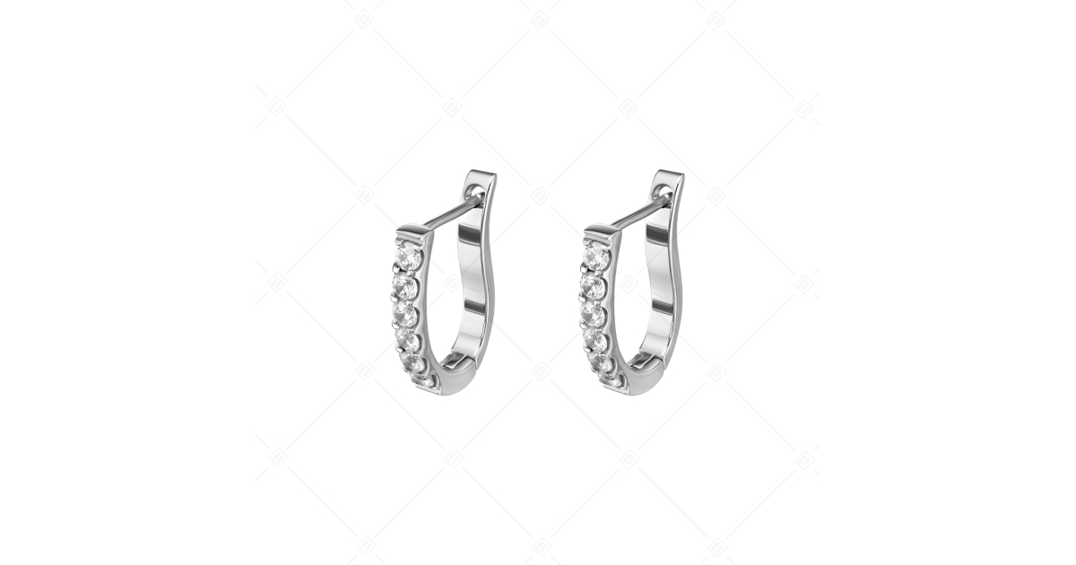 Patkó alakú 316L nemesacél fülbevaló magasfényű polírozással és kubik cirkónia drágakövekkel. Allergiamentes fémből készült. Anyagának köszönhetően nem színeződik, nem kopik el és a gyógyvízre vagy tisztítószerekre sem érzékeny. Divatos ékszer a mindennapokra.