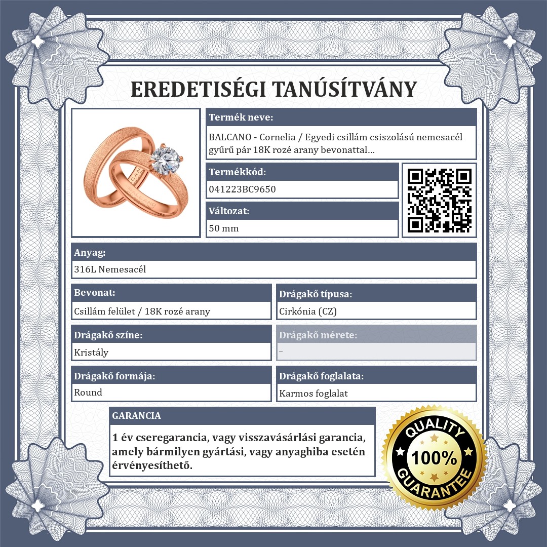 | Bevonat: | Csillám felület / 18K rozé arany |
