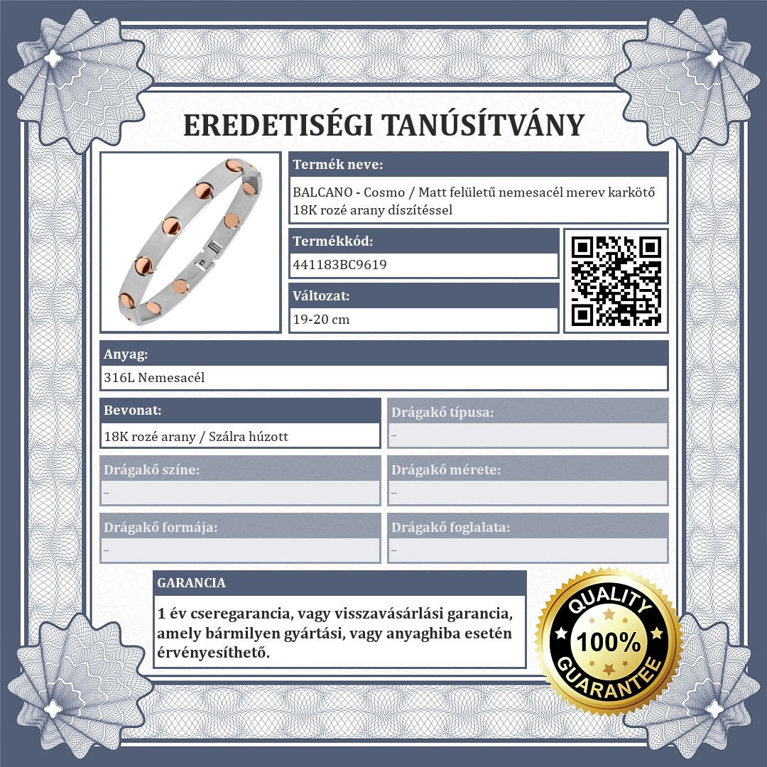 | Bevonat: | 18K rozé arany / Szálra húzott (matt) |