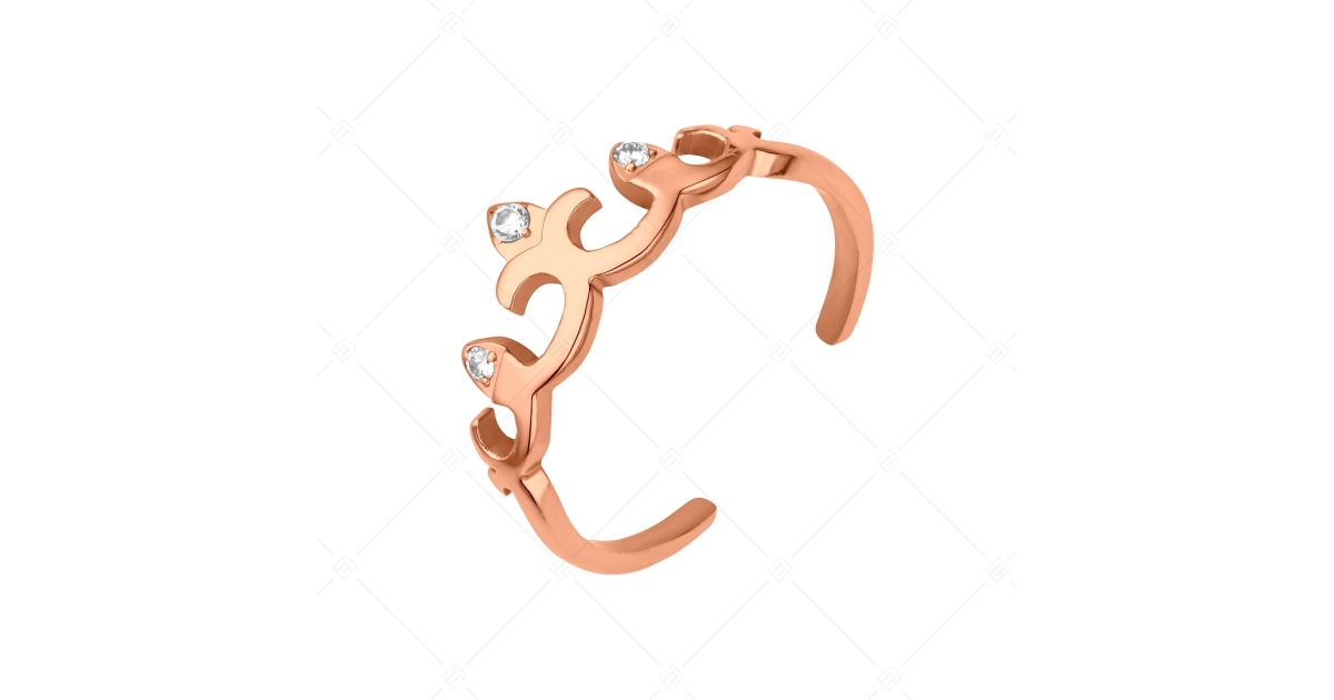 BALCANO - Crown / Korona alakú nemesacél lábujjgyűrű cirkónia drágakövekkel, 18K rozé arany bevonattal