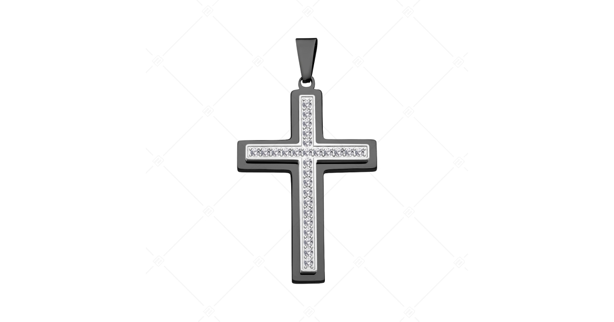 BALCANO - Crux / Kereszt alakú medál cirkónia drágakövekkel, fekete PVD bevonattal