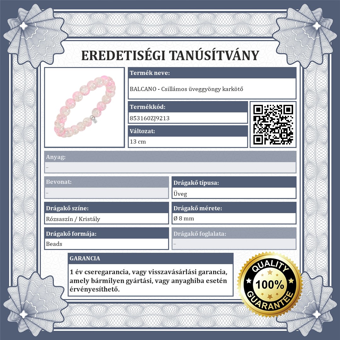 | Drágakő színe: | Halvány rózsaszín |