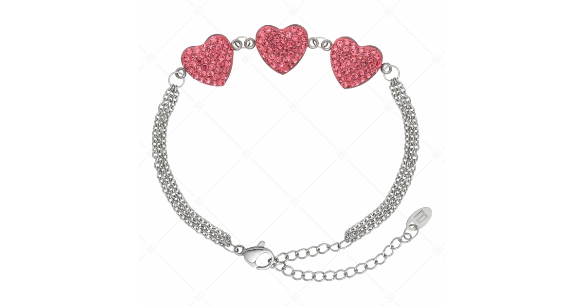 BALCANO - Cuore / Háromsoros nemesacél lánc karkötő szív alakú kristály charmokkal