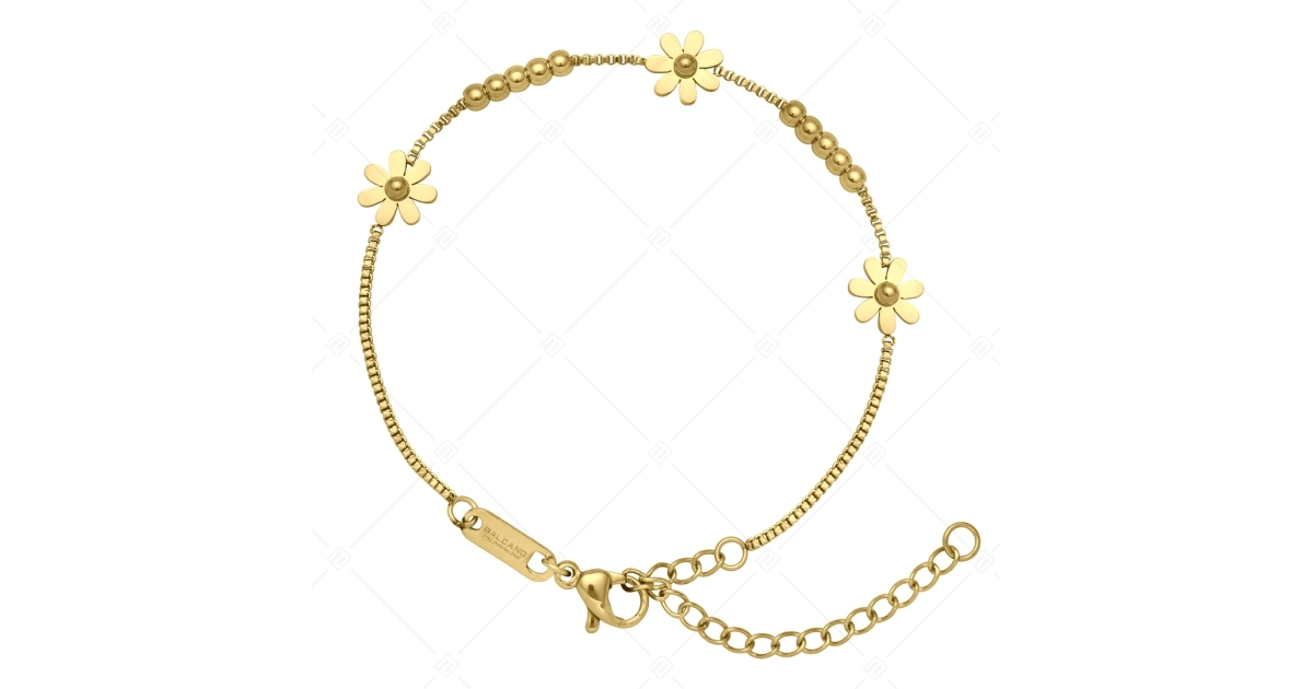 BALCANO - Daisy / Nemesacél karkötő százszorszép alakú díszekkel és 18K arany bevonattal
