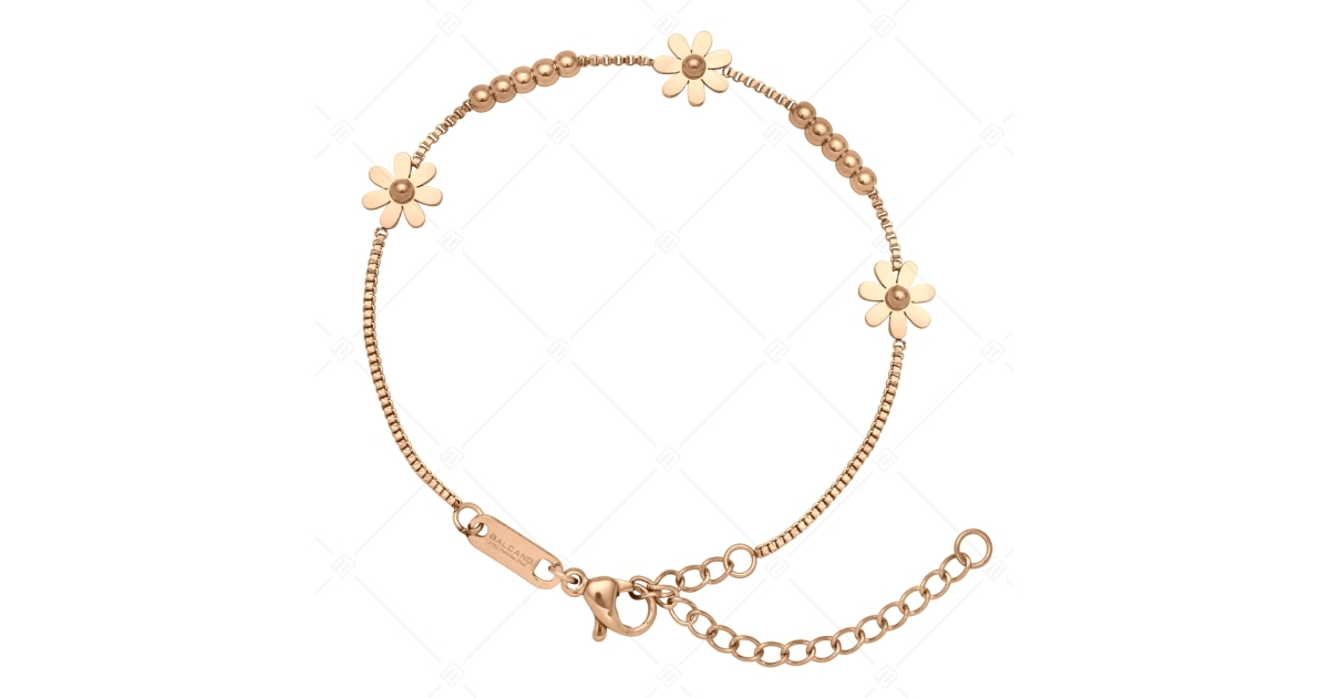 BALCANO - Daisy / Nemesacél karkötő százszorszép alakú díszekkel és 18K rozé arany bevonattal