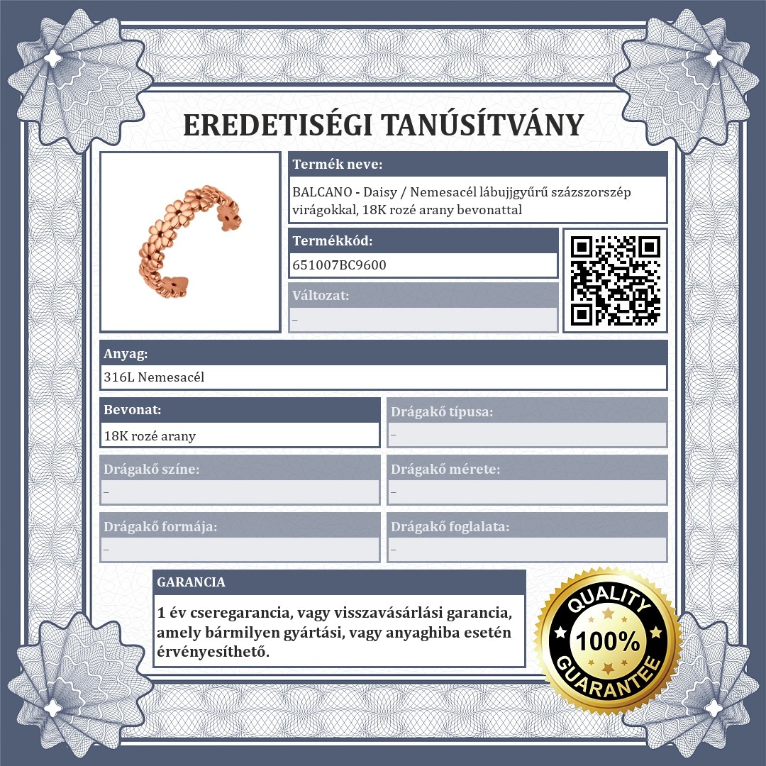 Allergiamentes 316L orvosi, rozsdamentes acél ékszer, 18K rozé arany bevonattal. Anyagának köszönhetően jól bírja a vizet és kopásálló. A lábujjgyűrű százszorszép virágokat ábrázol.