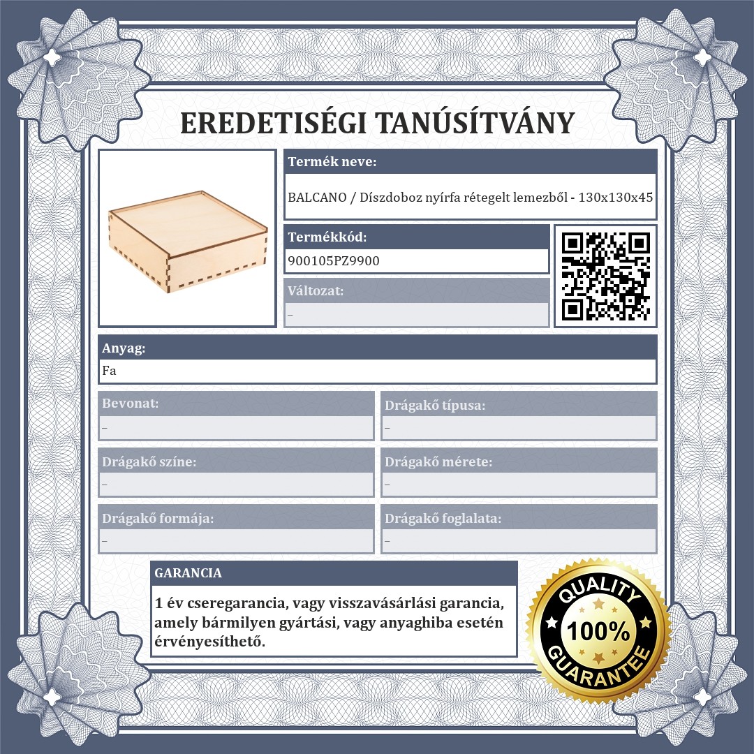BALCANO / Díszdoboz nyírfa rétegelt lemezből - 130x130x45
