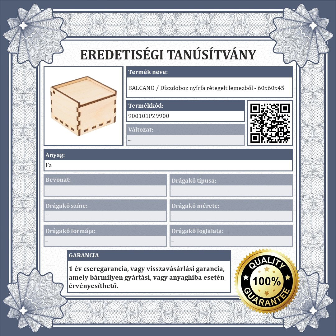 Kiváló minőségű nyírfa rétegelt lemez diszdoboz, amire kívánság szerint gravírozni vagy nyomtatni is tudunk. A doboz belső mérete 54 x 54 x 35 mm. Ajándékozáshoz önmagában, vagy akár egyedi díszcsomagolással is kérhető.