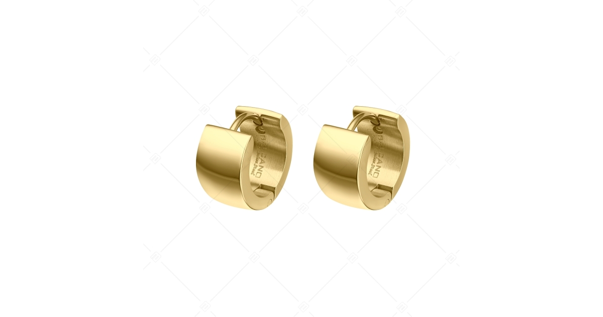 Enyhén domború felületű, bepattintós karika fülbevaló. 316L orvosi rozsdamentes acél ékszer, amely anyagának köszönhetően nem kopik, nem színeződik el. 18K arany bevonattal.