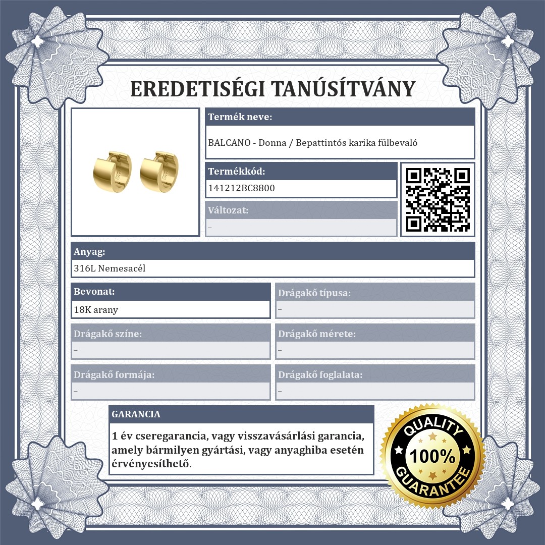| Bevonat: | 18K arany |