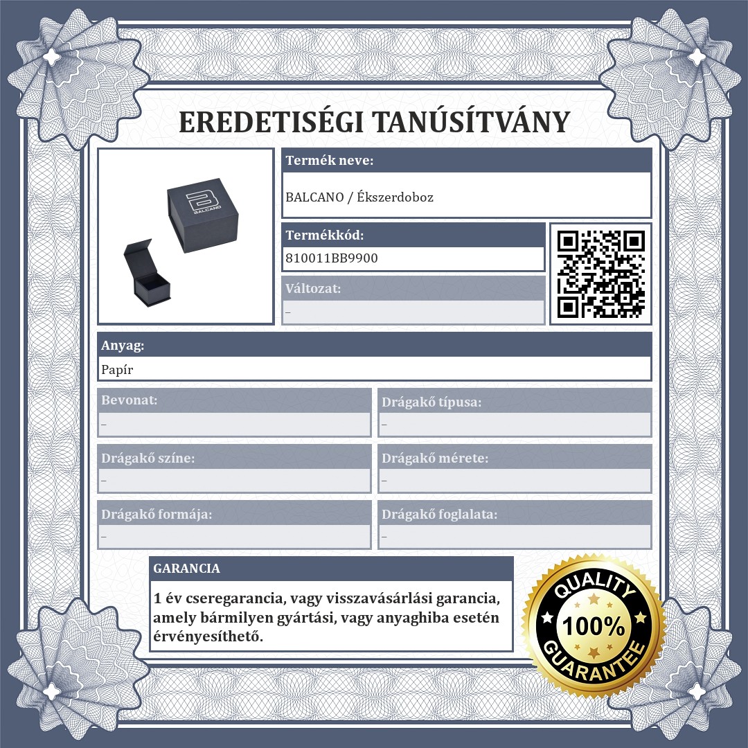 Kiváló minőségű mágneszáras ékszerdoboz, a fedelén ezüst színű BALCANO logóval és sötétkék plüss bevonatú szürke szivacs betéttel. A doboz belső mérete 46 x 46 mm. Gyűrűk, (akár jegygyűrűk párban is) kisebb fülbevalók és medálok biztonságos és esztétikus tárolására alkalmas. Ajándékozáshoz önmagában, vagy akár egyedi díszcsomagolással is kérhető.