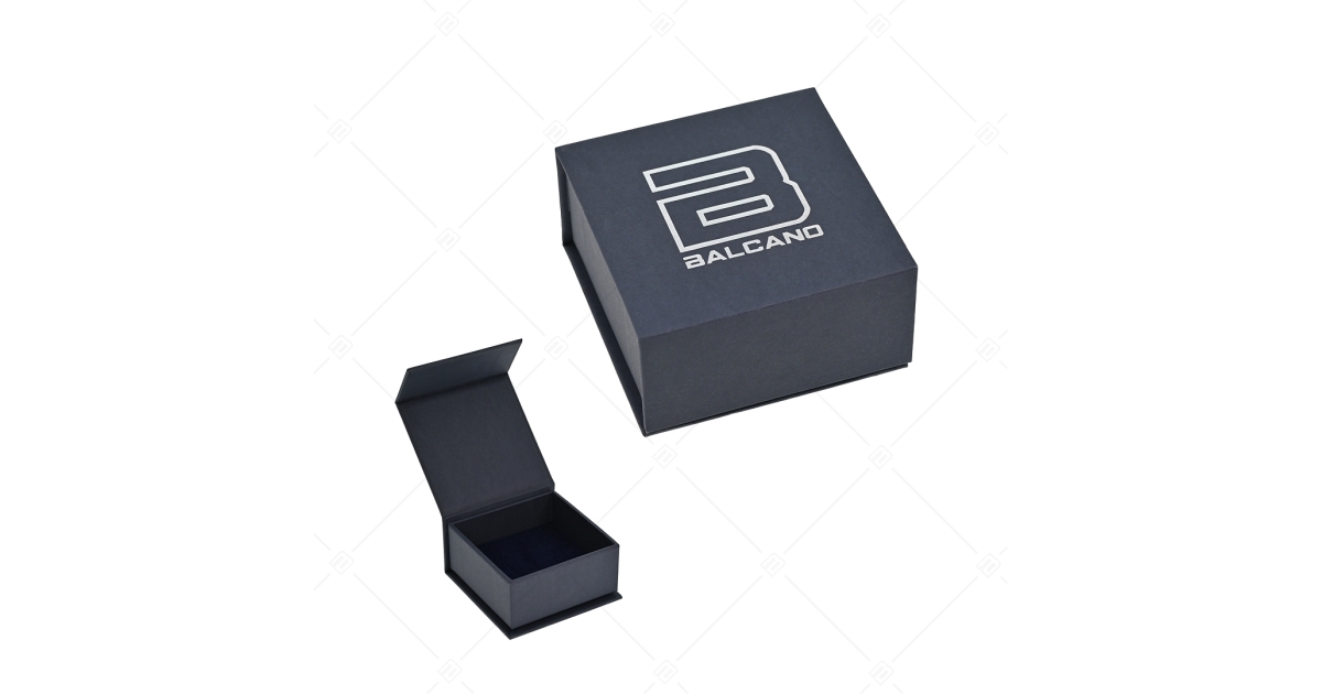 Kiváló minőségű mágneszáras ékszerdoboz, a fedelén ezüst színű BALCANO logóval és sötétkék plüss bevonatú szürke szivacs betéttel. A doboz belső mérete 65 x 65 mm. Fülbevalók, nyakláncok és medálok biztonságos és esztétikus tárolására alkalmas. Ajándékozáshoz önmagában, vagy akár egyedi díszcsomagolással is kérhető.