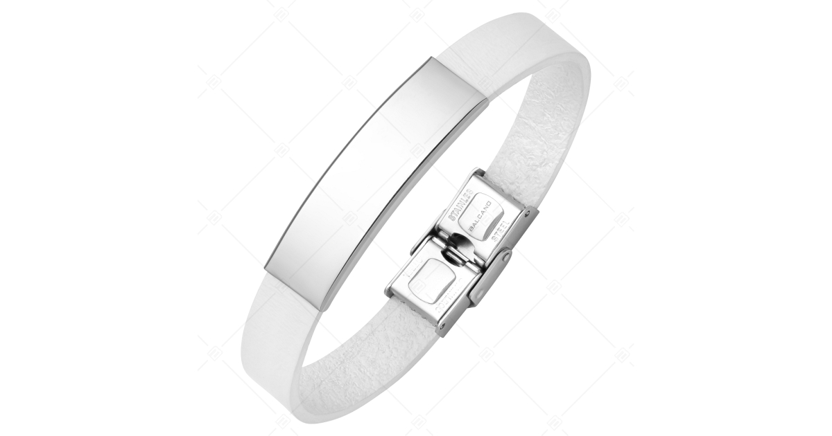 BALCANO - Fehér színű bőr karkötő, gravírozható, téglalap alakú nemesacél fejrésszel