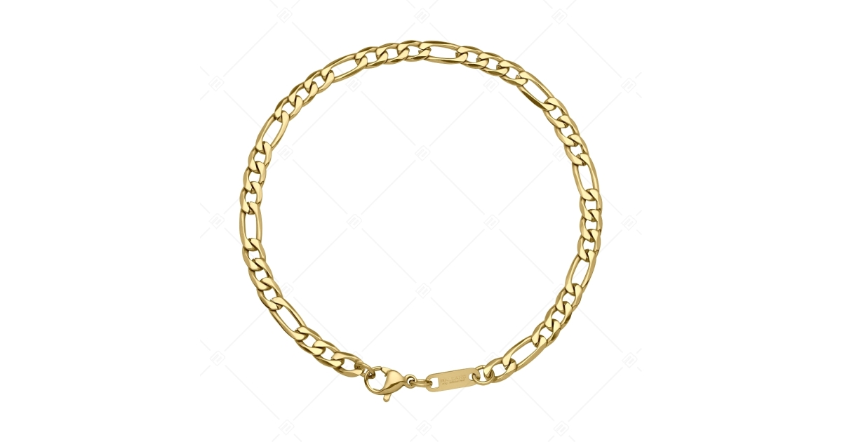 BALCANO - Figaro / Nemesacél figaró 3+1 szemes karkötő, 18K arany bevonattal - 4 mm