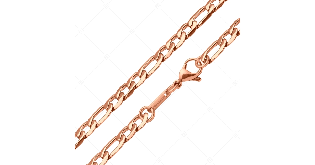 BALCANO - Figaro / Nemesacél figaró 3+1 szemes nyaklánc 18K rozé arany bevonattal - 6 mm