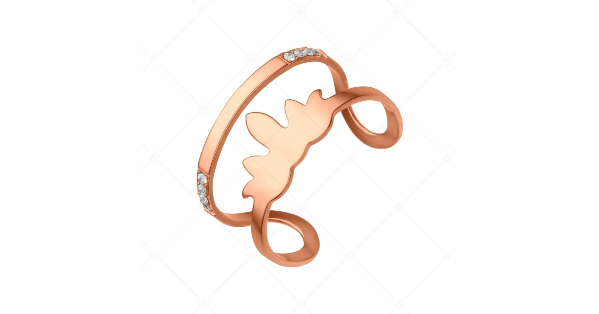 BALCANO - Fire / Tűz alakú alakú nemesacél lábujjgyűrű cirkónia drágakövekkel és 18K rozé arany bevonattal